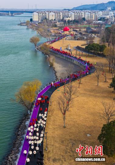 江苏盱眙千人沿淮健步迎新年 生态步道展绿色发展成果