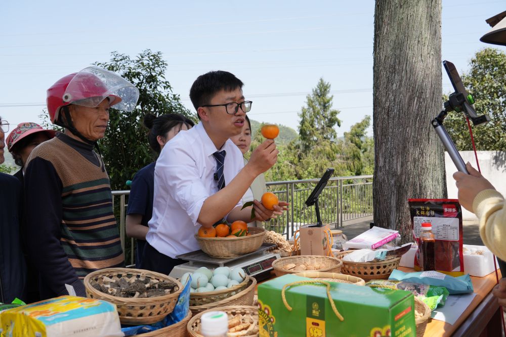 4月9日,“村播”们正在4川省广元市苍溪县的沙参园曲播。